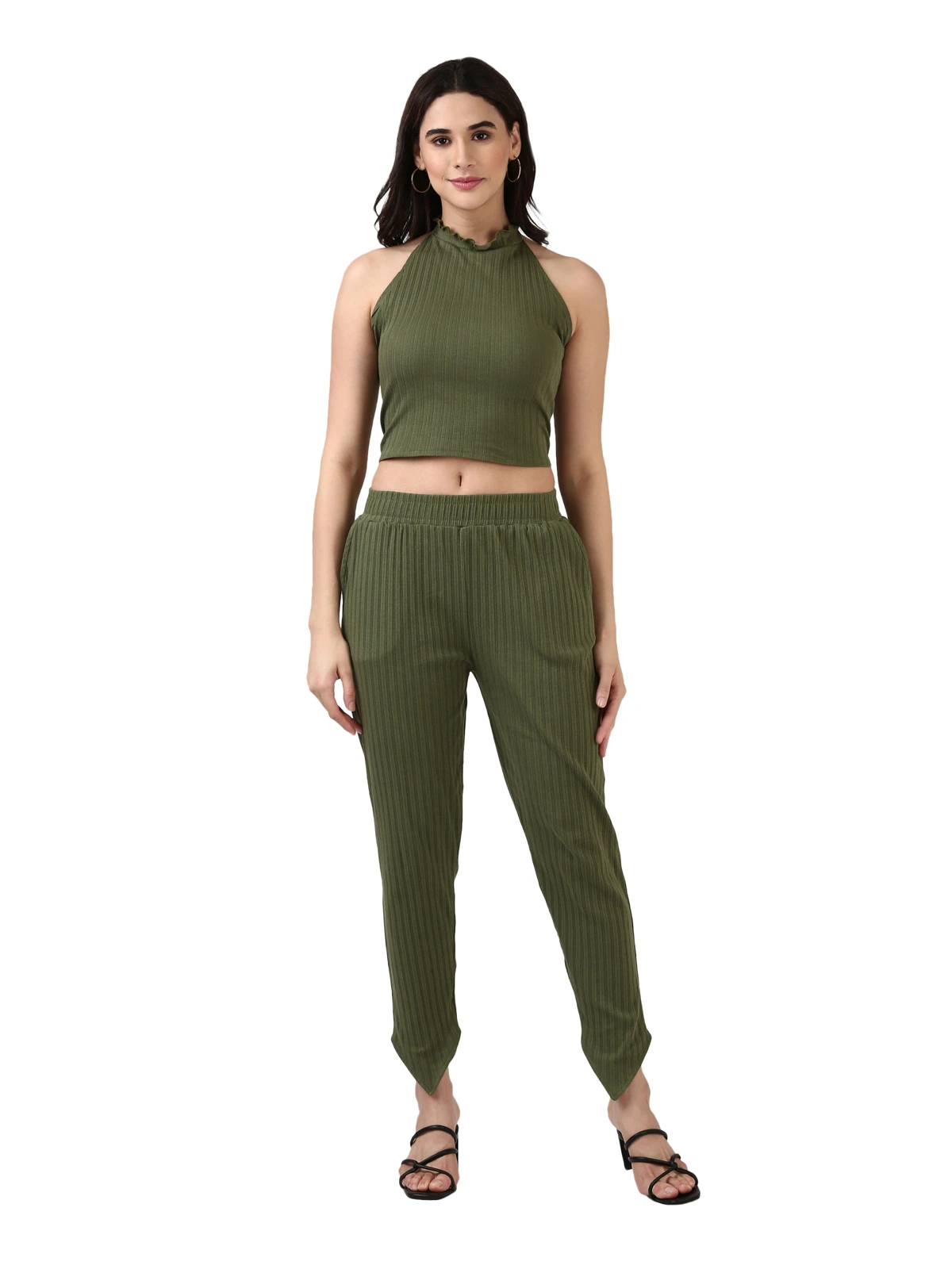 - Halter neck back tie up sleeveless crop top with a high neckline.